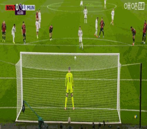 第61分鍾,庫尼亞造點,B費主罰命中,曼聯1-0