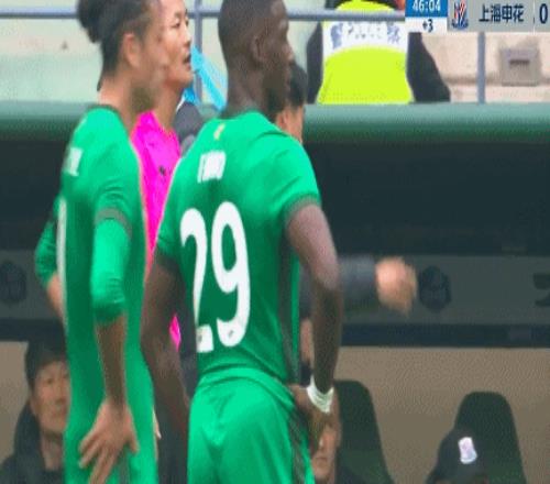 第28分鍾,張稀哲直傳之後被撞倒,法比奧同樣被撞倒,主裁判馬寧判罰法比奧越位在先。