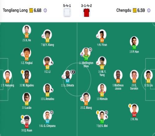 第85分鍾,迪馬塔完成雙響,銅梁龍讓二追三3-2反超蓉城。