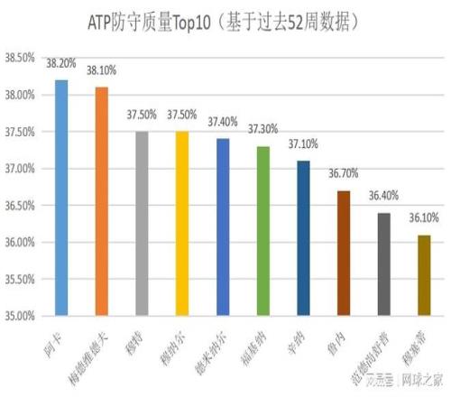 基於以上三大類指標,ATP列出了過去52周防守質量Top10榜單,如下圖所示。