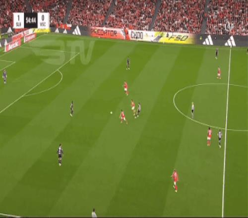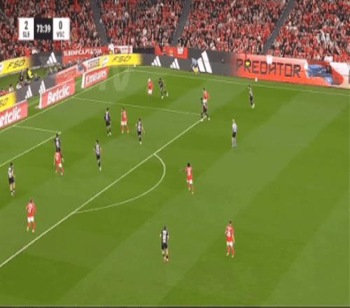 比賽一開打,本菲卡便迅速進入高強度壓迫節奏。穆裏尼奧並沒有選擇一味控球,而是要求球隊在中場進行針對性逼搶,一旦斷球就快速直塞打身後。這種更偏向效率的打法,讓吉馬良斯在開局階段就陷入被動。