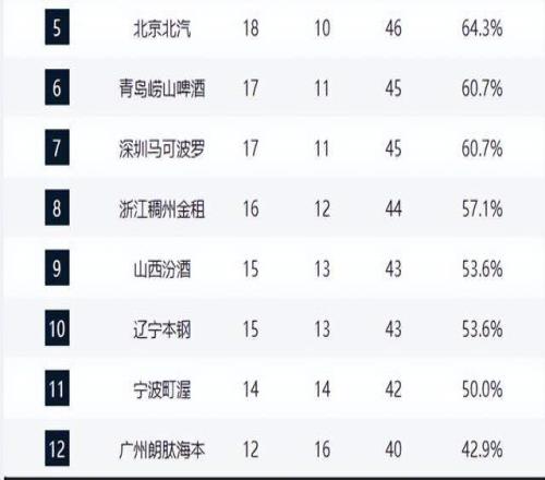 上海廣廈拉開差距,廣東暫列第3,山東第4不穩,8隊爭奪第12名_24直播網