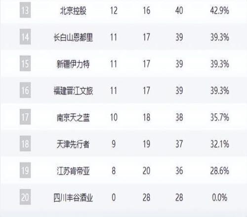 福建、同曦、天津、江蘇等隊仍在為最後一線生機拚殺,而四川隊至今未嚐勝績,0勝28負墊底,賽季已無懸念。