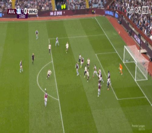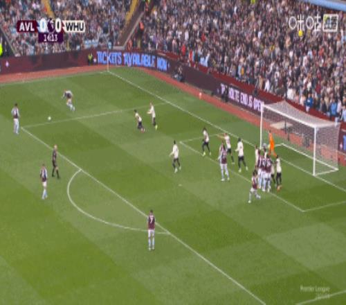 第68分鍾,羅傑斯射門被撲,沃特金斯補射破門,維拉2-0西漢姆聯