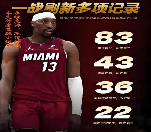 我問你,阿德巴約是曆史級別的得分手嗎?很明顯他不是,他的進攻能力在NBA都排不上前二十,但他靠刷分,拿到了83分,那是不是意味著,任何一名進攻能力比熱巴強的球員,在不考慮球隊打法戰術、隊友心態以及比賽輸贏的前提下,就可以瘋狂出手,隻為打破記錄?這樣的記錄,即便是拿到了100分,你認可嗎?