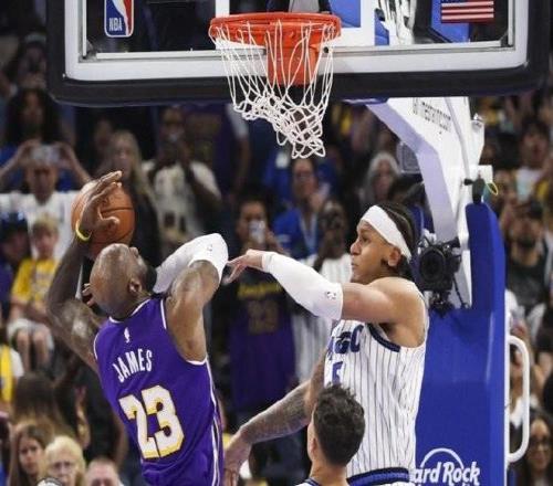 當魔術104-102領先,詹姆斯籃下接球準備攻筐時,班凱羅封下詹姆斯這次上籃後,球出界;隨後進行了回看,結果是球沒有被認定為最後打在詹姆斯腳上出界,所以湖人保住了球權。
