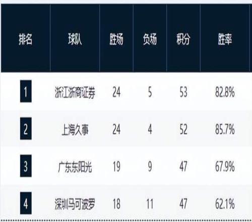 中遊集團競爭激烈:寧波隊14勝14負勝率持平,廣州與北控同為12勝16負,暫列第12、13位,成為季後賽“守門員”;吉林、新疆、福建三隊11勝17負,仍保留理論衝擊季後賽的可能。