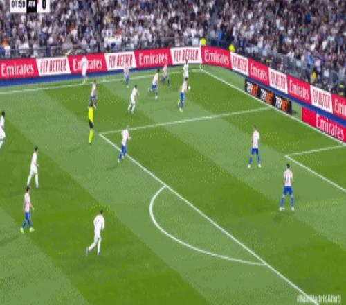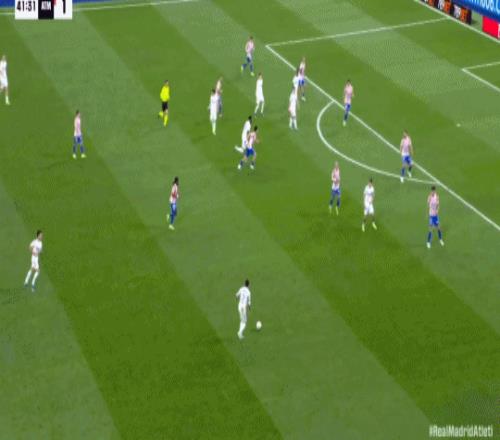 第41分鍾,卡瓦哈爾斜傳,楚阿梅尼甩頭攻門頂偏