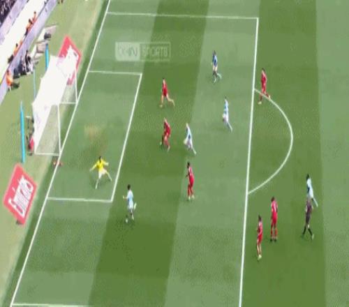 比賽的第37分鍾,範戴克禁區內踢倒奧萊利,主裁判判罰點球,哈蘭德主罰點球破門,1比0!