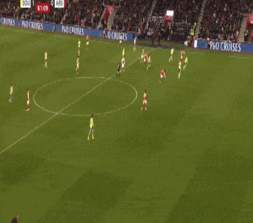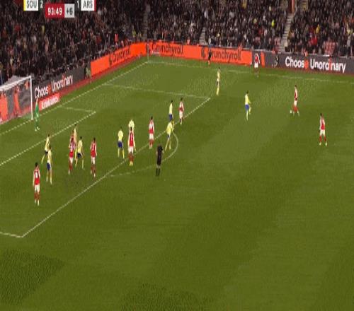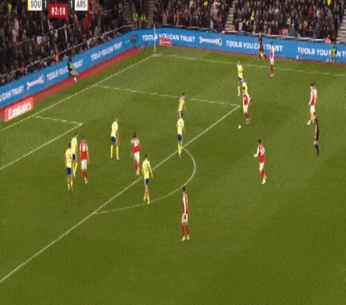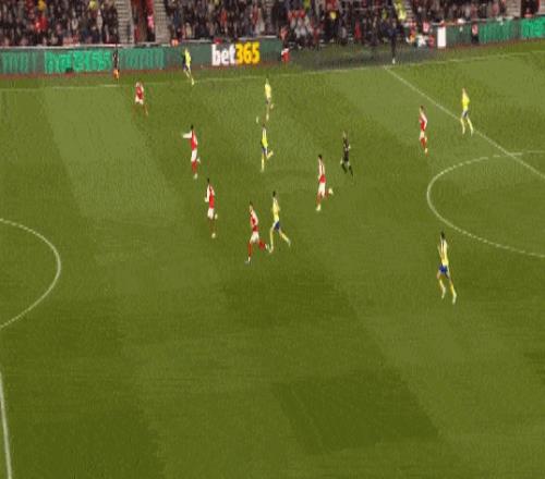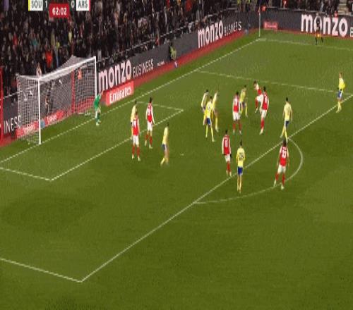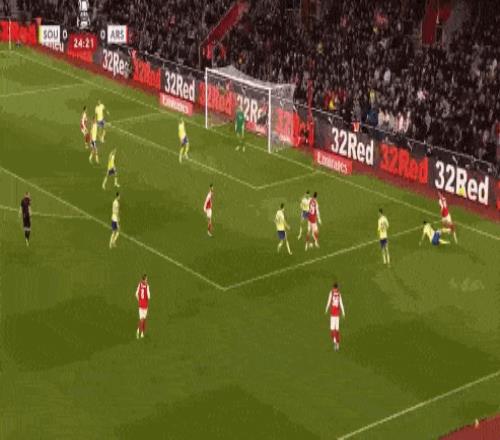 第35分鍾,南安普頓後場反擊,布裏送出傳中,禁區內本懷特冒頂失誤送禮,斯圖亞特笑納大禮破門,阿森納0-1落後。